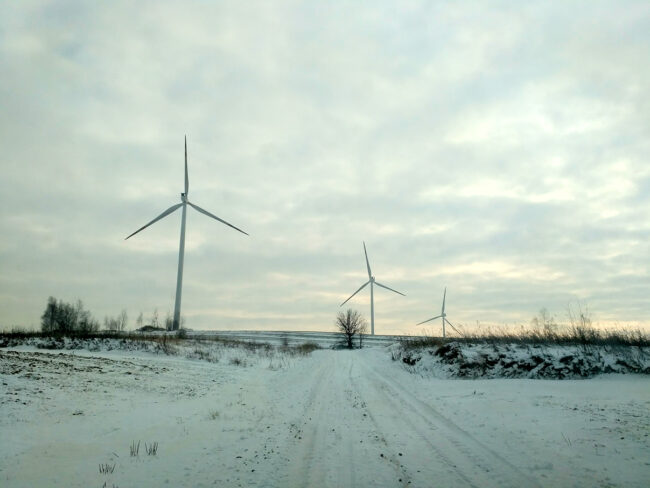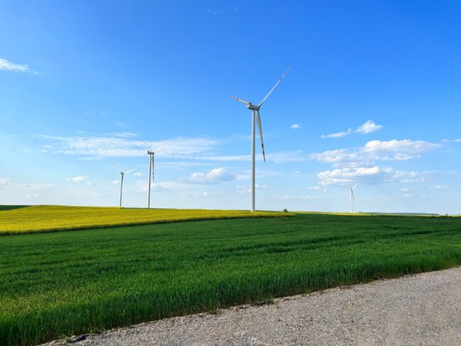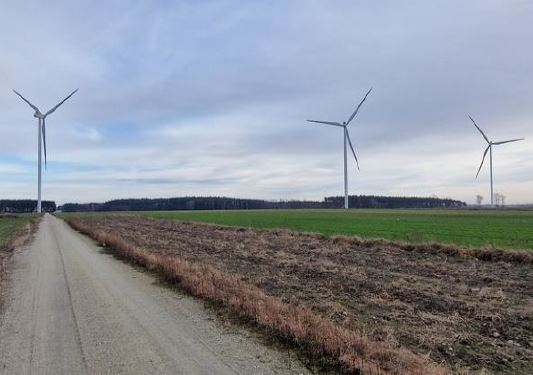 Windpark mit 5 Turbinen und einer Kapazität von 10 MW, gelegen in der Woiwodschaft Heiligkreuz (Polen), mit einer geschätzten Jahresproduktion von 22 GWh (2024).