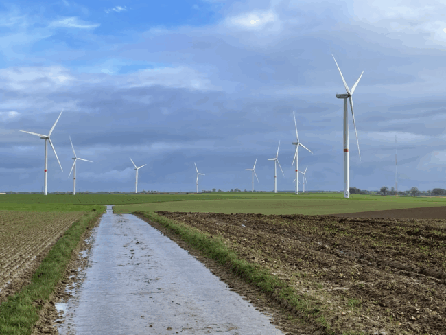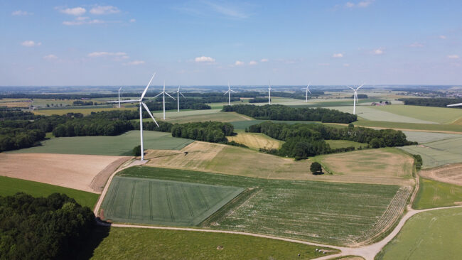 Wind farm with 10 turbines—9 at 2.4 MW and 1 at 3.4 MW—reaching a total capacity of 25 MW, located in the Wallonia region (Belgium), with an estimated annual production of 68 GWh (2024).