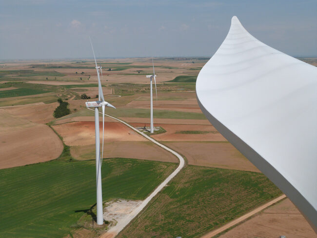 Wind farm with three turbines and a capacity of 6 MW, located in Becerril de Campos (Palencia, Spain), with an estimated annual production of 16 GWh (2024).
